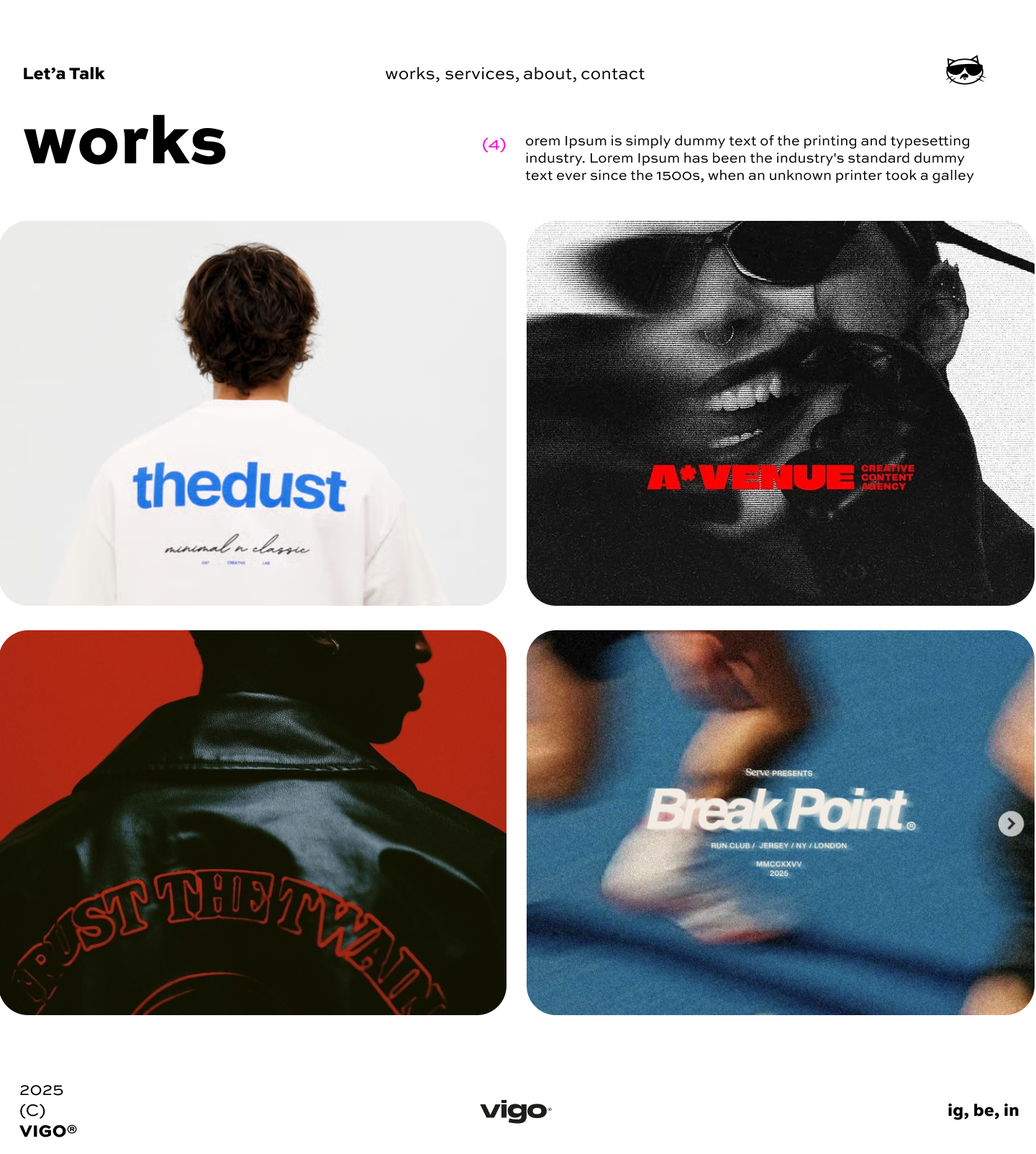 Vigo moves between brand direction, digital product expression, and spatial image-making without flattening any of them into generic portfolio language. The practice is shaped like an editorial room: every project begins with composition, tone, and what should remain memorable after the interface disappears.